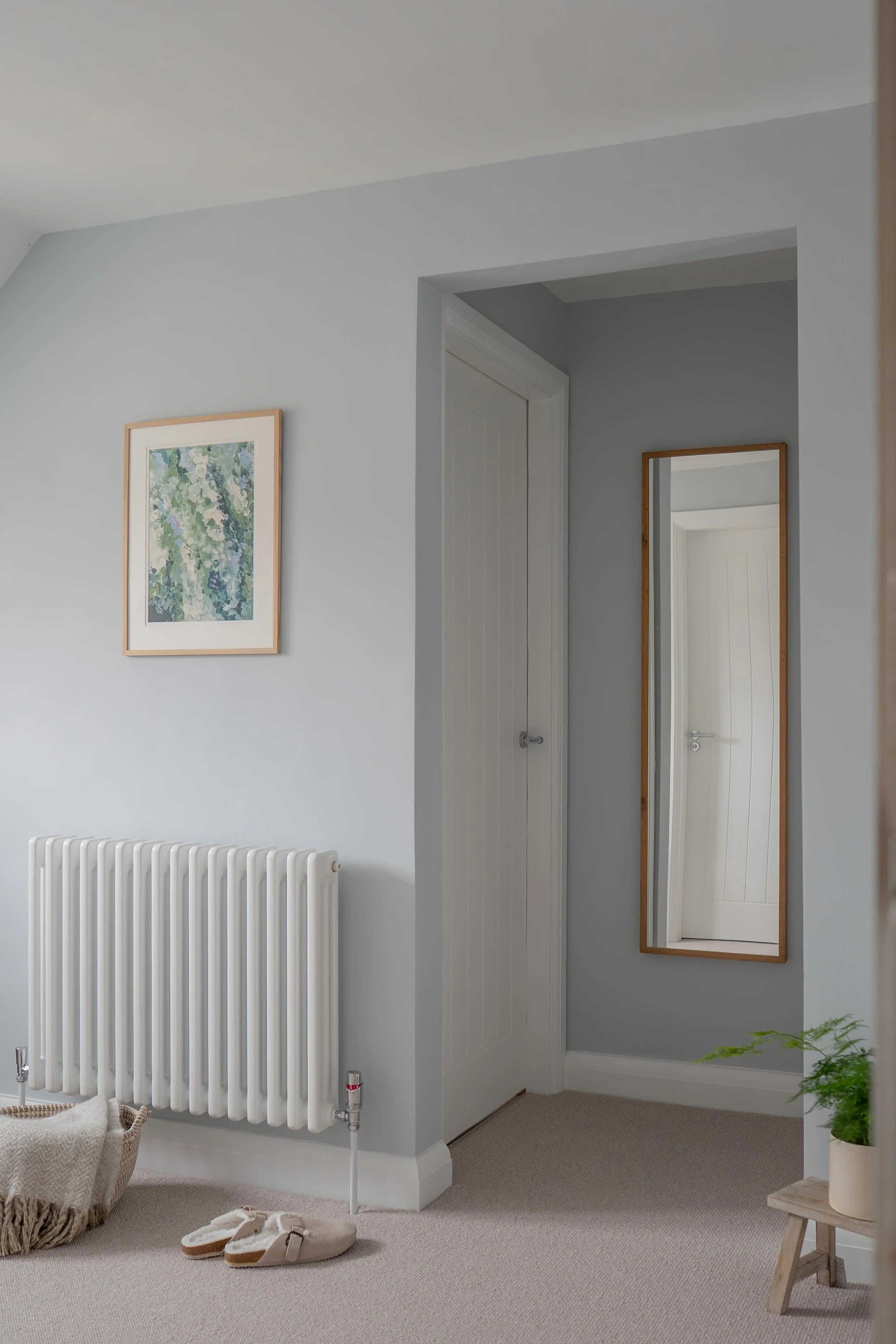 The finishing touches brought it all together a botanical print, an oak mirror, a trailing fern, slippers left by the door. Every detail with purpose, nothing without reason.